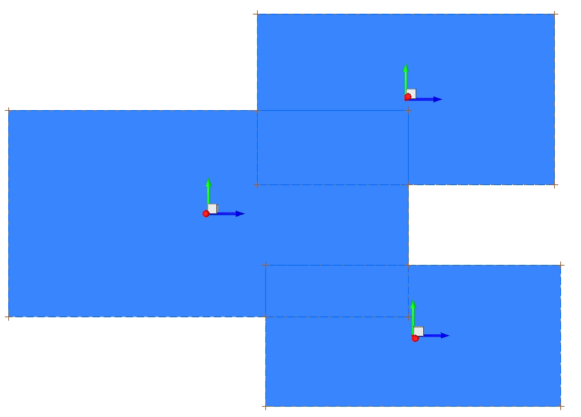 Figure 3a shows three sheet bodies before a boolean union general operation, and Figure 3b shows the result.