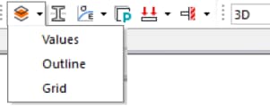 - By selecting the Grid option, the thickness can be displayed at grid points inside the elements, as well as at the element edges.
